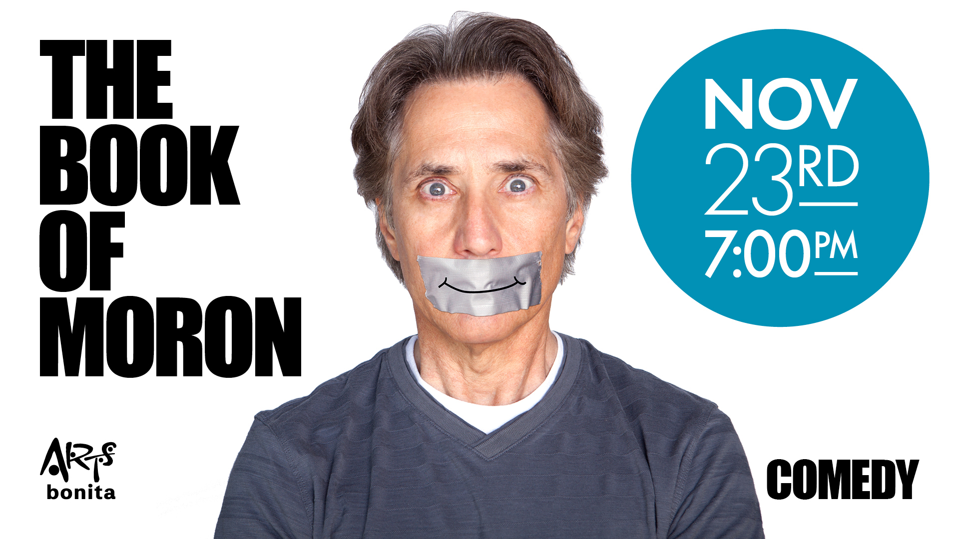 The Book of Moron is a fast-paced hilarious production that combines satire and theatre into what is being described by critics as: "Razor-sharp!" "Laugh out loud!" "Provocative, "Thought Provoking!" "Brilliant!" and "A Thinking Man's One Man Show!"